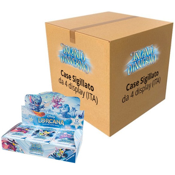 - Case da 4 Booster Display da 24 bustine l'uno del set Incanto d'Inverno, l'undicesimo set di Disney Lorcana