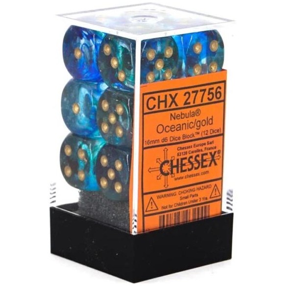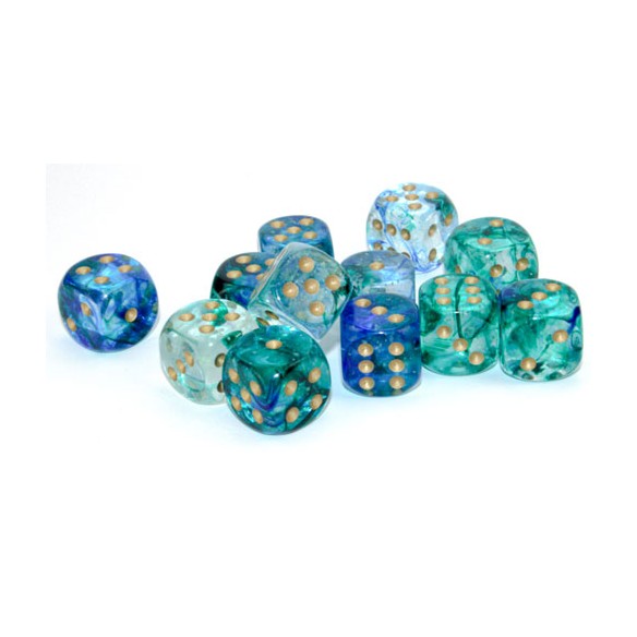 Chessex - Set 12 Dadi da 16mm - Nebula Oceanic/Gold
