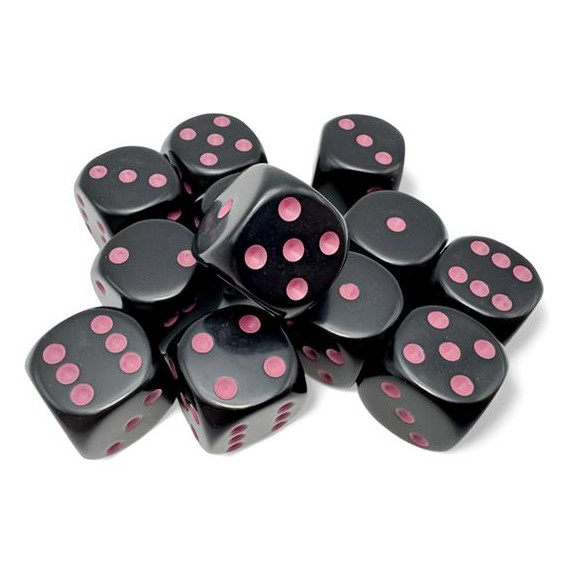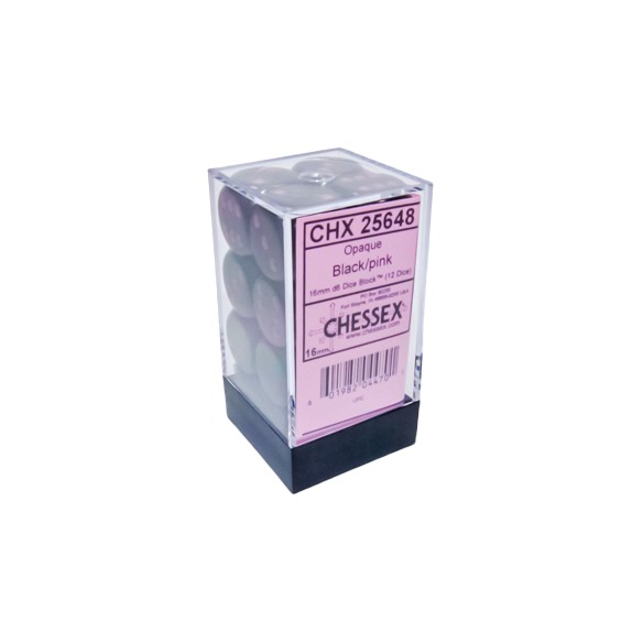 Chessex - Set 12 Dadi da 16mm - Opaque Black/Pink