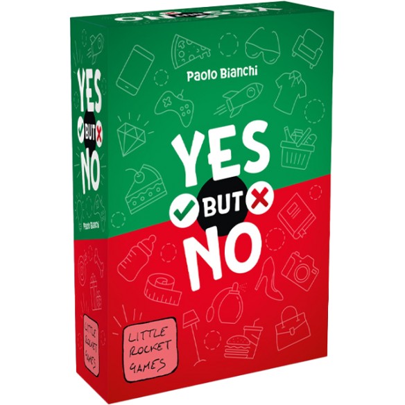 Pesca una categoria, hai una lettera da usare e una da evitare. Trova al volo una parola valida e dilla prima degli altri. Sembra semplice, finché non scatta il panico al tavolo! La parola giusta è sulla punta della tua lingua... ma anche su quella degli altri. Yes but No è perfetto per ridere, urlare risposte improbabili e sfidare gli amici in round rapidissimi.