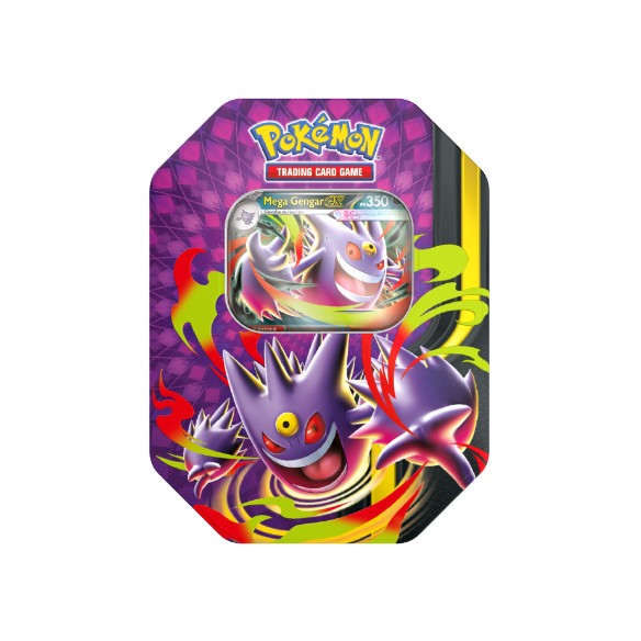 Un Pokémon che è un'autentica celebrità: amato, bramato, ammirato dagli occhi degli allenatori di tutto il mondo, specialmente da quelli della prima generazione. Gengar arriva nella sua forma più potente: quella Mega ex! Unisciti a lui, e riprendi il dominio della scena grazie a questa Tin da Collezione!